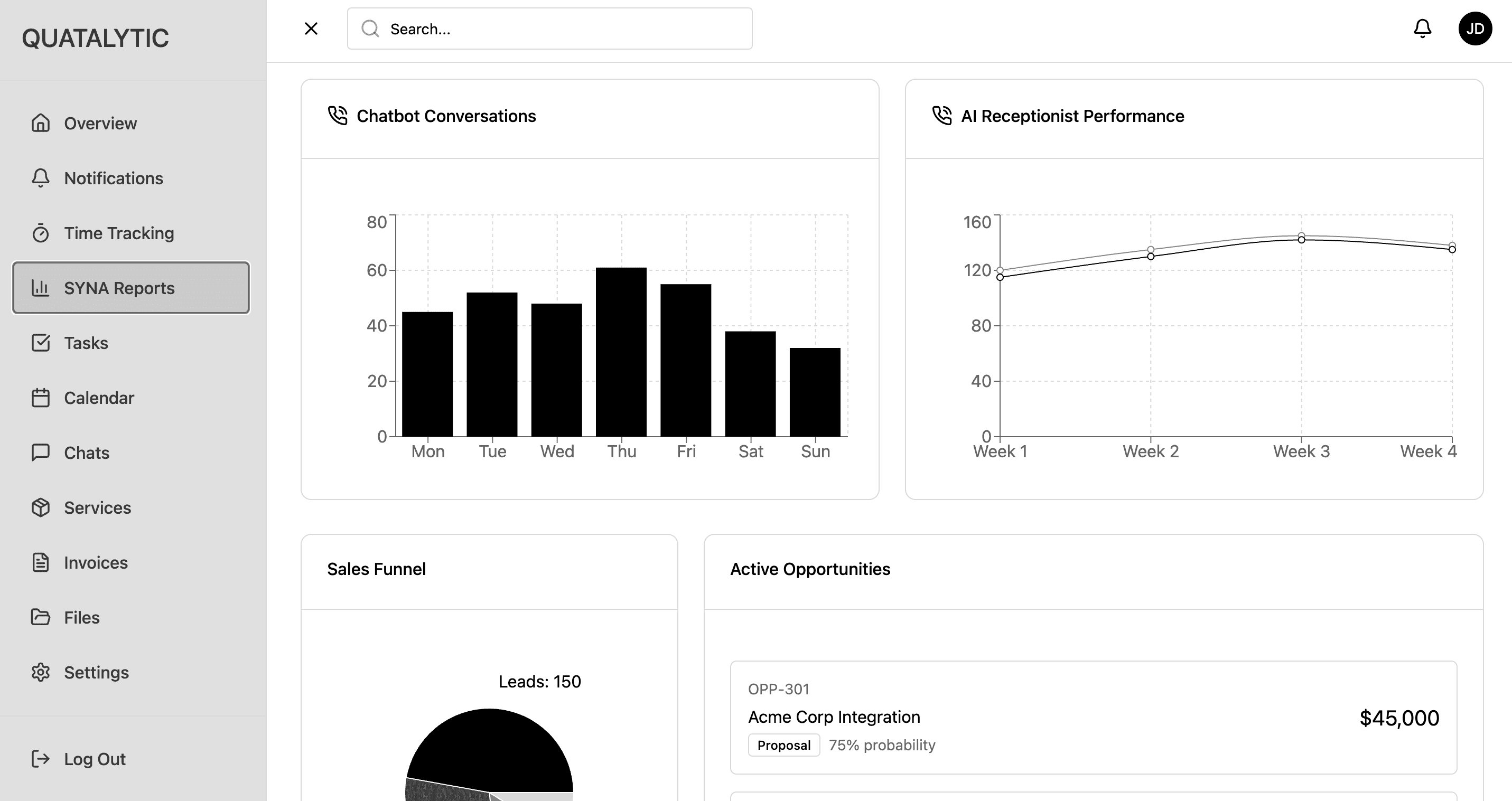 Quatalytic designs and deploys AI-driven workflow systems that reduce manual work, centralise operations, and improve visibility — powered by Genesis SYNA, our configurable automation platform.